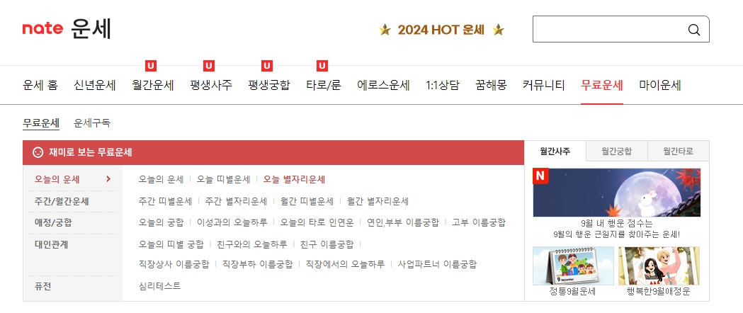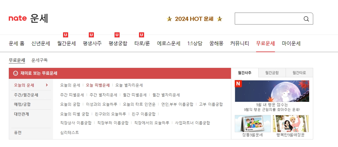 네이트 운세는 가장 대중적인 운세 사이트 중 하나로, 다양한 운세 정보를 한 곳에서 제공하는 것이 큰 장점입니다. 띠별 운세와 별자리 운세 외에도, 특별한 이벤트 운세나 맞춤형 운세 등 다양한 옵션이 있습니다.