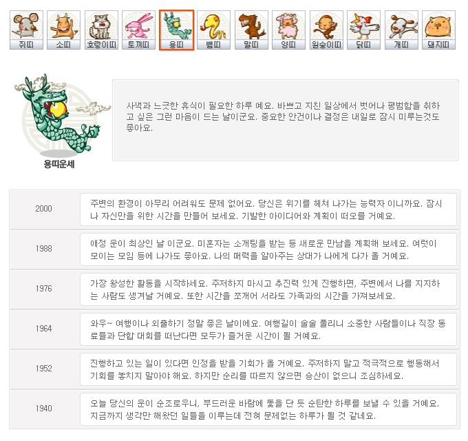 - 띠별 운세와 별자리 운세의 다양한 제공