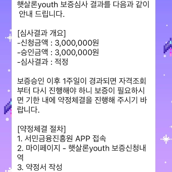 - 대출 심사: 서류를 제출하고 심사를 거칩니다. 심사 결과는 문자 메시지나 이메일로 통보됩니다.