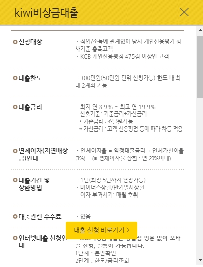 KB저축은행 Kiwi 비상금대출 조건